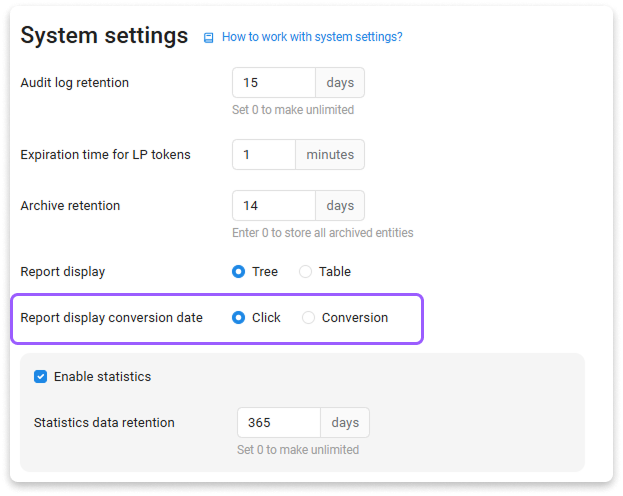 Go to Settings → System → Report display conversion date → Conversion