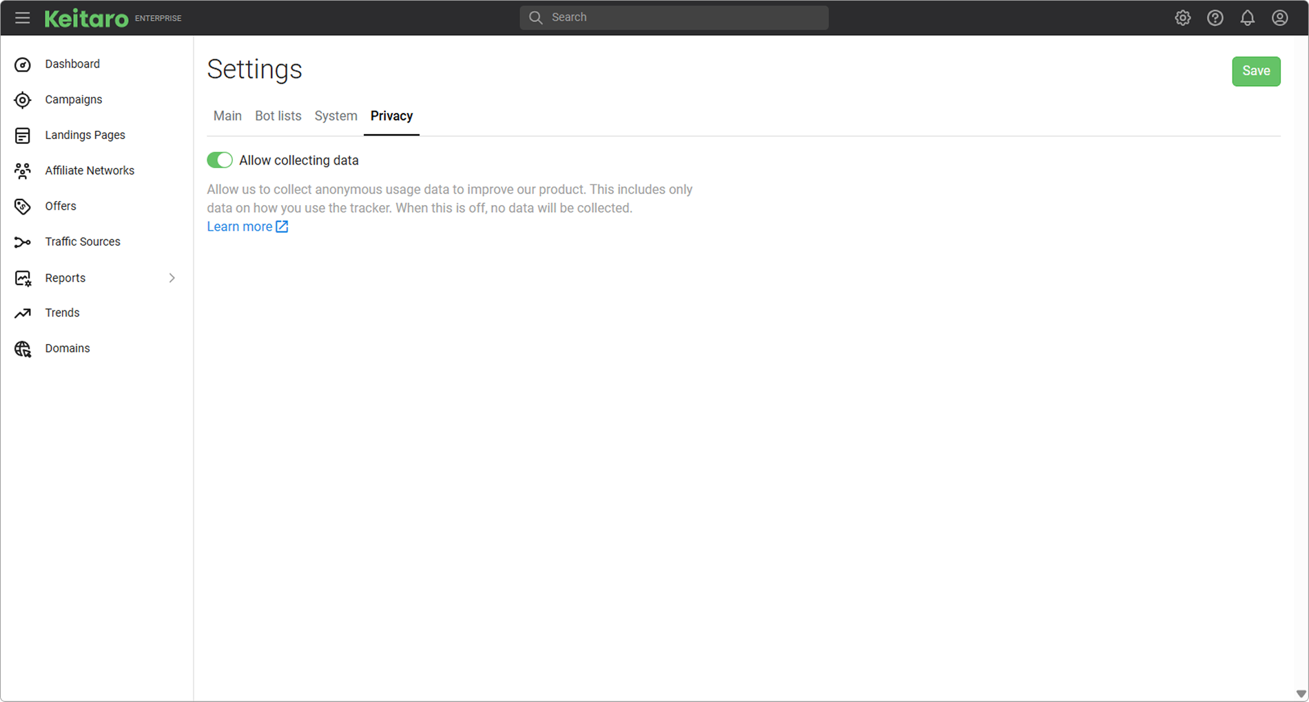 To open the privacy settings, go to Maintenance ⚙️ → Settings → Privacy.
