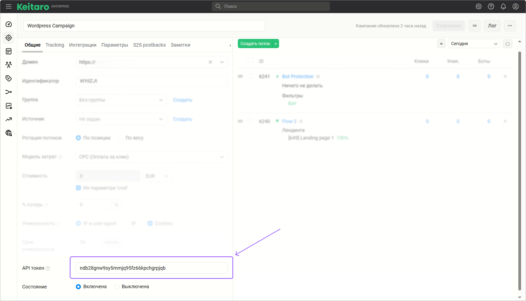 Токен сможете взять из настроек кампании. Один WordPress сайт работает с одной кампанией.