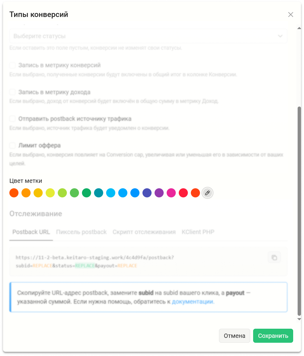 # Цветовое выделение Типов конверсий