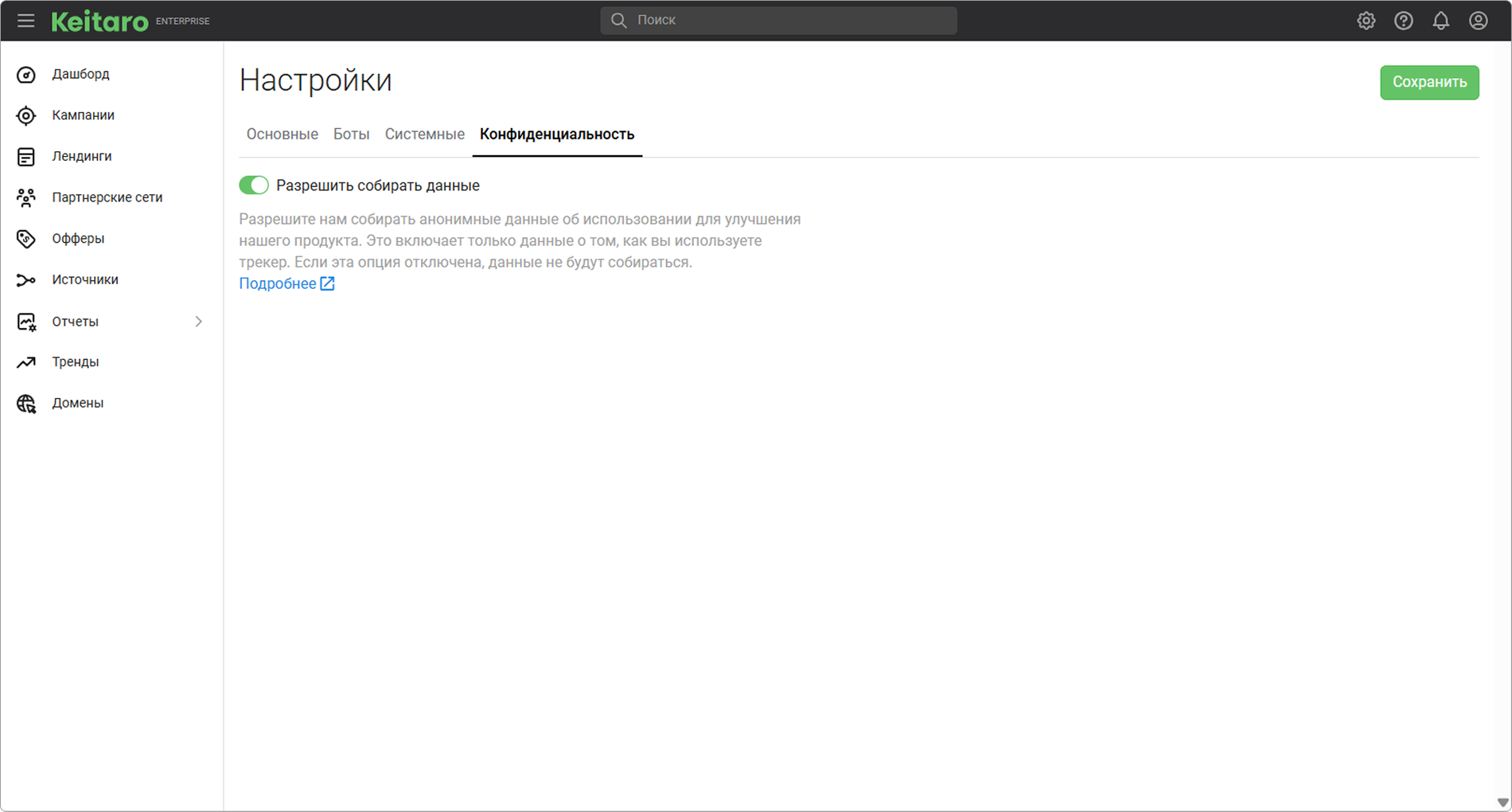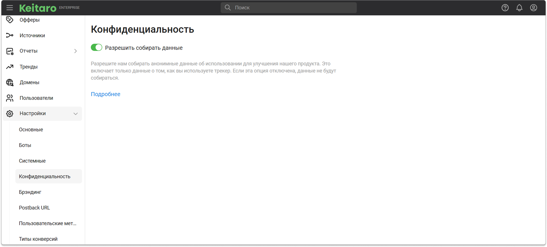 Данная функция позволяет собирать анонимную информацию об использовании трекера для улучшения продукта и повышения удобства работы. Сбор данных касается только особенностей использования трекера и не включает персональные данные.